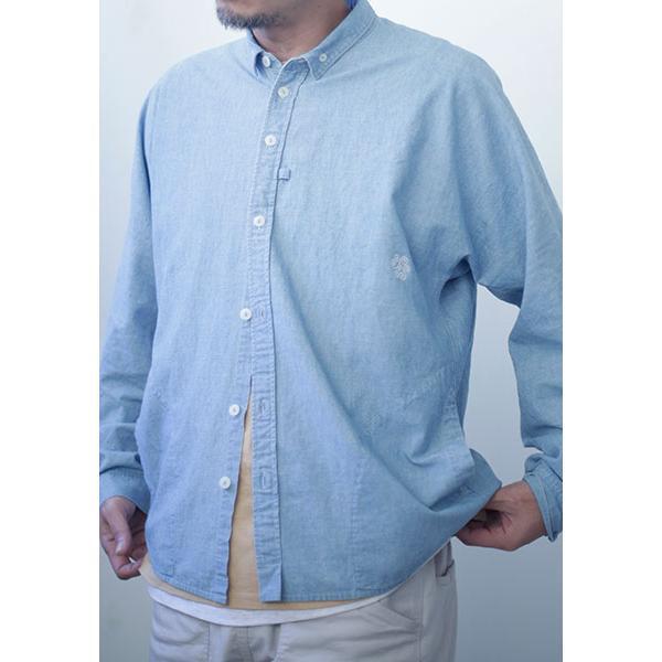 5ozのシャンブレー生地を使用し、仕上げにバイオストーンブリーチ洗い仕様。